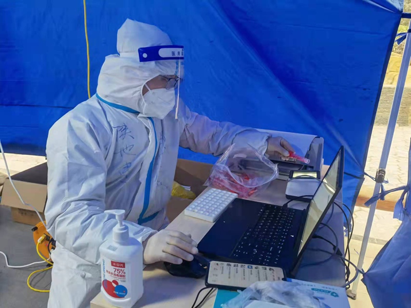 1月4日凌晨3:11,地建房地產(chǎn)集團(tuán)公司職工黨洲濤接到社區(qū)李主任通知,要求早7:00在社區(qū)辦公室集合,配合醫(yī)護(hù)人員完成核酸檢測信息錄入工作。他第一時(shí)間回復(fù):“保證按時(shí)參加?!痹谇宄康牡谝豢|陽光照耀大地時(shí),黨洲濤已換好防護(hù)服,坐在電腦桌旁,靜等新一輪核酸檢測工作開始。自2021年12月29日參加西十里鋪社區(qū)抗疫工作以來,他24小時(shí)待命,不分晝夜,隨叫隨到,已配合社區(qū)醫(yī)護(hù)人員累計(jì)完成核酸檢測信息錄入4530余人次。1月4日晚上10點(diǎn),黨洲濤已連續(xù)工作超過14個(gè)小時(shí)。他先后參與核酸檢測信息錄入和社區(qū)蔬菜發(fā)放工作,核酸檢測過程中,面對(duì)系統(tǒng)宕機(jī)、天氣寒冷,他耐心安慰、勸導(dǎo)居民,積極幫助老人兒童制作紙質(zhì)身份信息二維碼,并主動(dòng)承擔(dān)居家隔離、老弱病殘上門檢測工作。系統(tǒng)恢復(fù)后,和社區(qū)工作人員群策群力,采取加開通道、分類導(dǎo)流、上門服務(wù)等多種方式,提高工作效率,確保按時(shí)完成當(dāng)日檢測任務(wù)。下午4點(diǎn),核酸檢測工作結(jié)束后,他又立即投身社區(qū)蔬菜發(fā)放工作,上車卸菜、過程轉(zhuǎn)運(yùn)、上門送菜等每個(gè)環(huán)節(jié)都能看到他的身影,在社區(qū)工作人員、下沉干部、志愿者的共同努力下,終于在22:30完成了蔬菜發(fā)放工作,共配送1480余份。