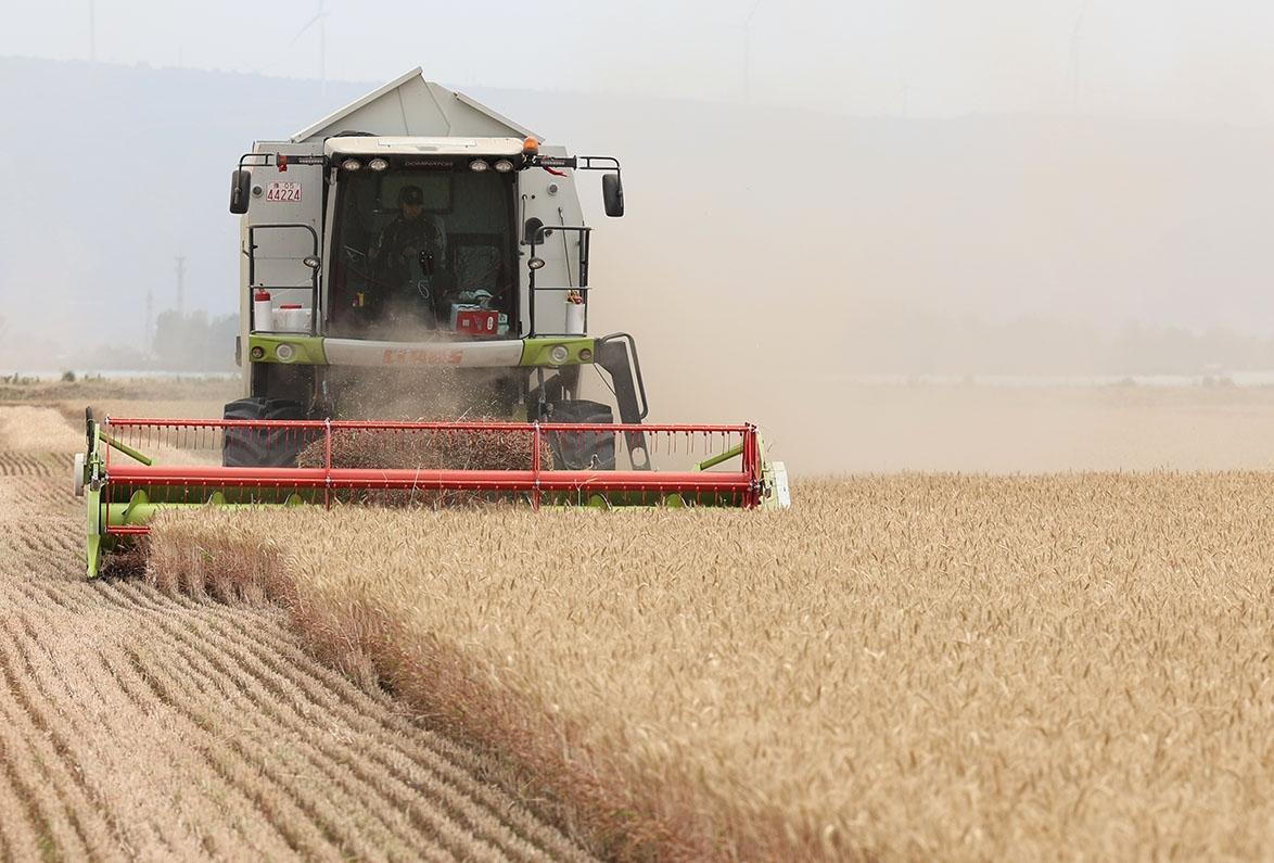 “快!快把傳送帶再調(diào)高些!”種植戶田源踮著腳,沖著工人喊道。這位在農(nóng)場扎根三年的漢子,今年照看260多畝麥田。望著不斷吐出麥粒的機械,他黝黑的臉上露出欣慰的神情。
