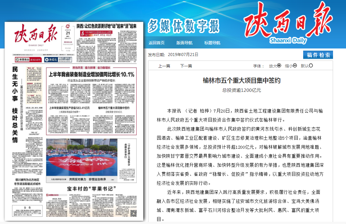 【陜西日報(bào)】榆林市五個(gè)重大項(xiàng)目集中簽約