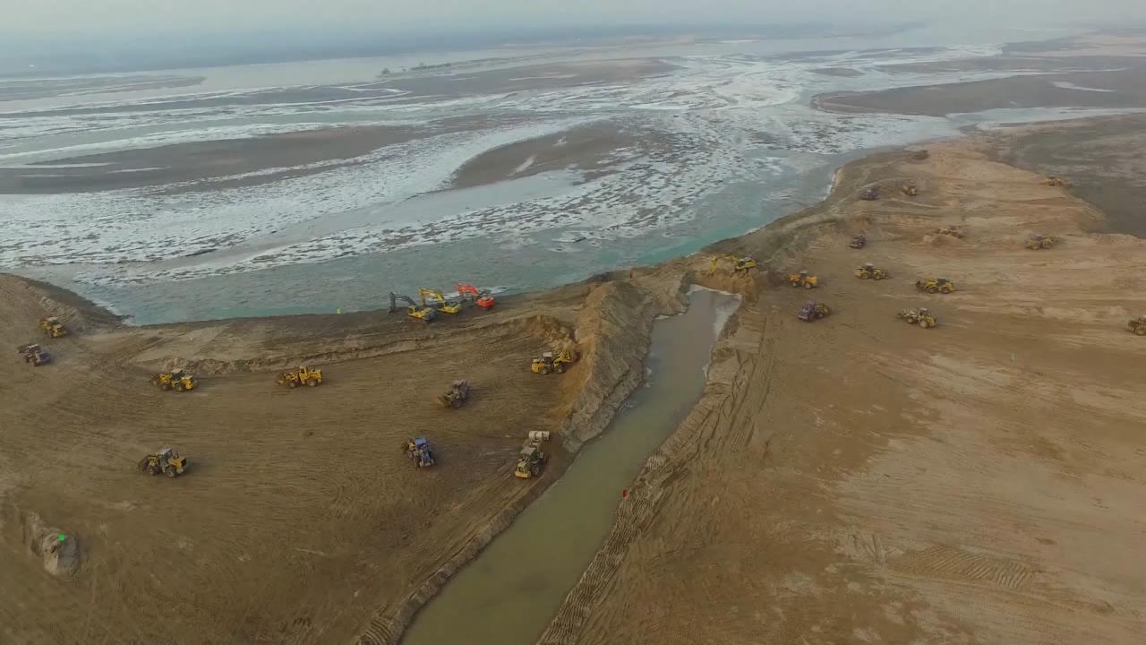 黃河分公司剛組建時,條件十分艱苦,由于時間緊、難度大、任務(wù)重,為保證韓城下峪口試驗段控導(dǎo)工程成功合攏,全體人員眾志成城,同心協(xié)力,克服隆冬時節(jié)惡劣的自然條件,在施工現(xiàn)場附近支起帳篷,就地安營扎寨。不分晝夜,加班加點,定任務(wù)、促進(jìn)度、趕工期,終于在2016年1月12日,實現(xiàn)了導(dǎo)流槽工程的勝利貫通,譜寫了黃河灘上的一曲頌歌。