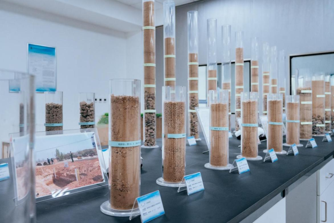 陜西地建土地工程技術(shù)研究院人員在土體材料區(qū)開(kāi)展土壤質(zhì)地檢測(cè)。蘇唐詩(shī) 攝