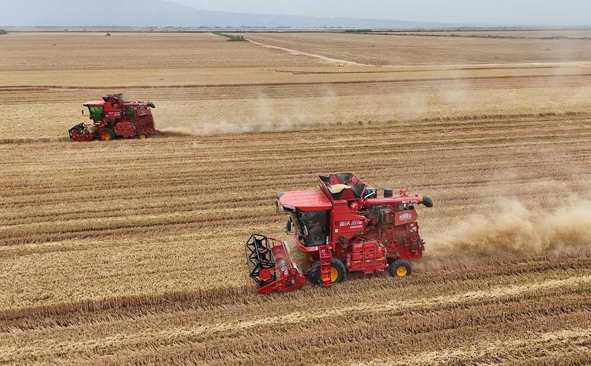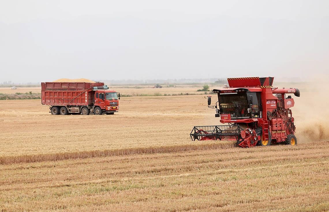 但李懷斌話鋒一轉(zhuǎn),指著遠處轟鳴的大型收割機說:“不過科技也在‘省錢’。就拿這進口收割機來說,5米6寬的刀具,20分鐘就能裝滿5噸麥子,機損率幾乎可以忽略不計。要是以前使用的那種小型機械,麥粒撒得滿地都是?!?/p>