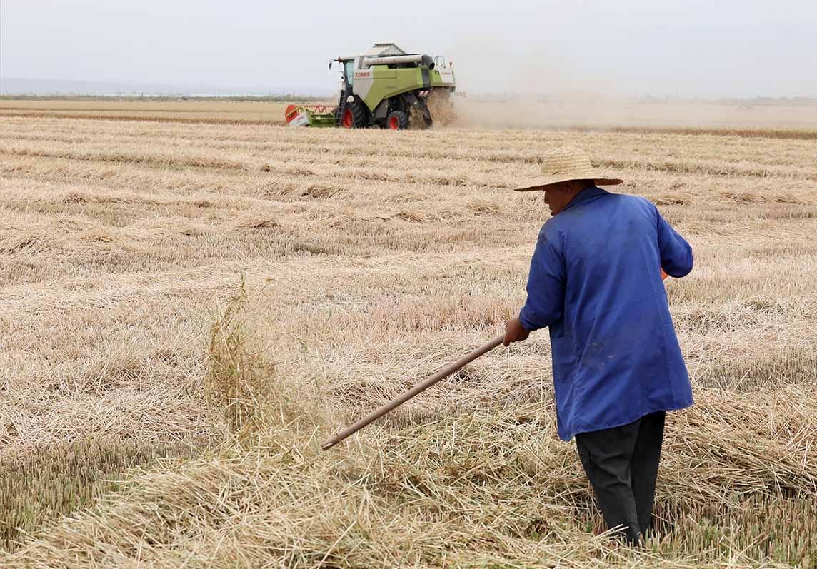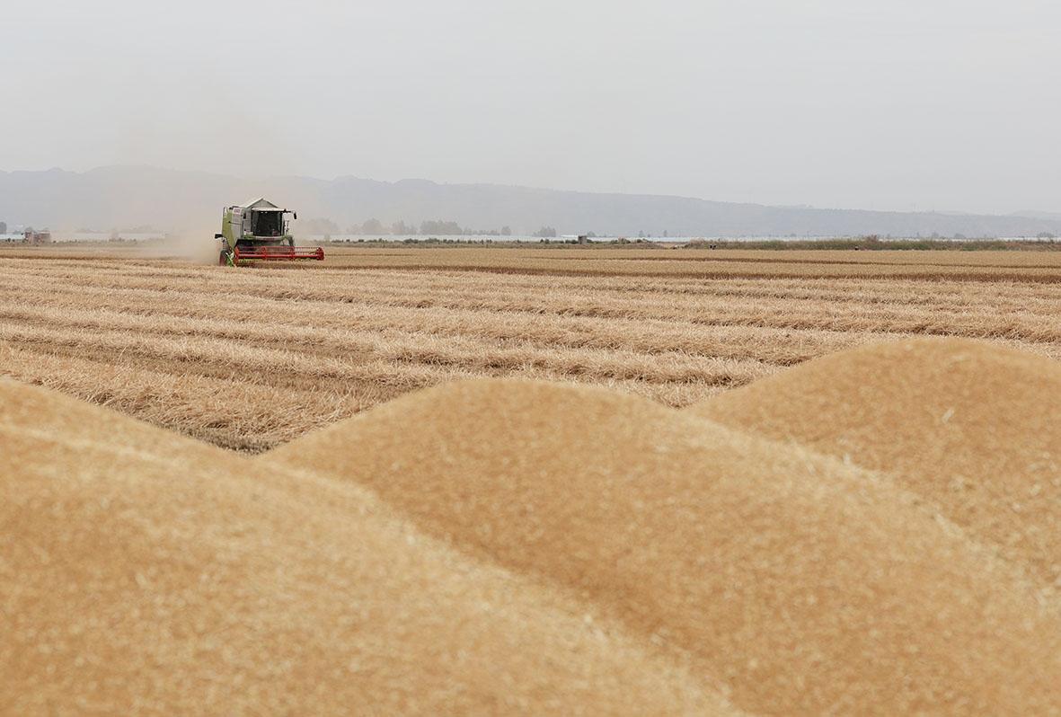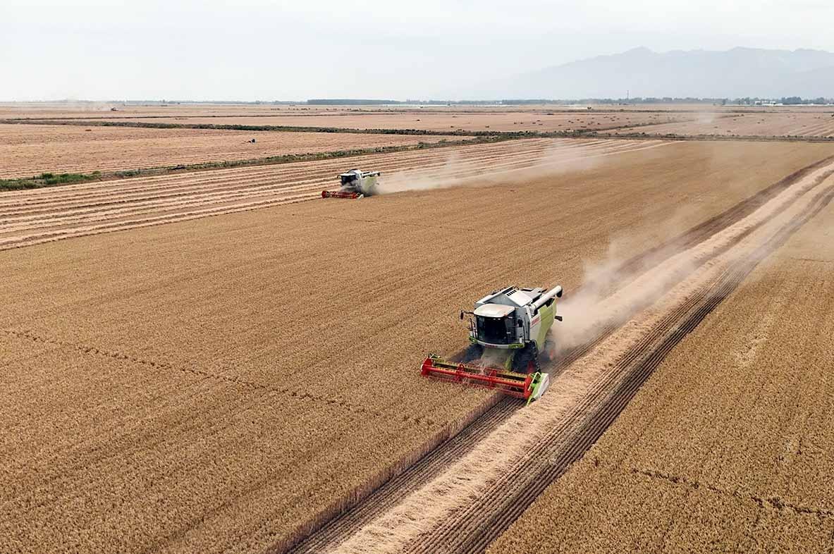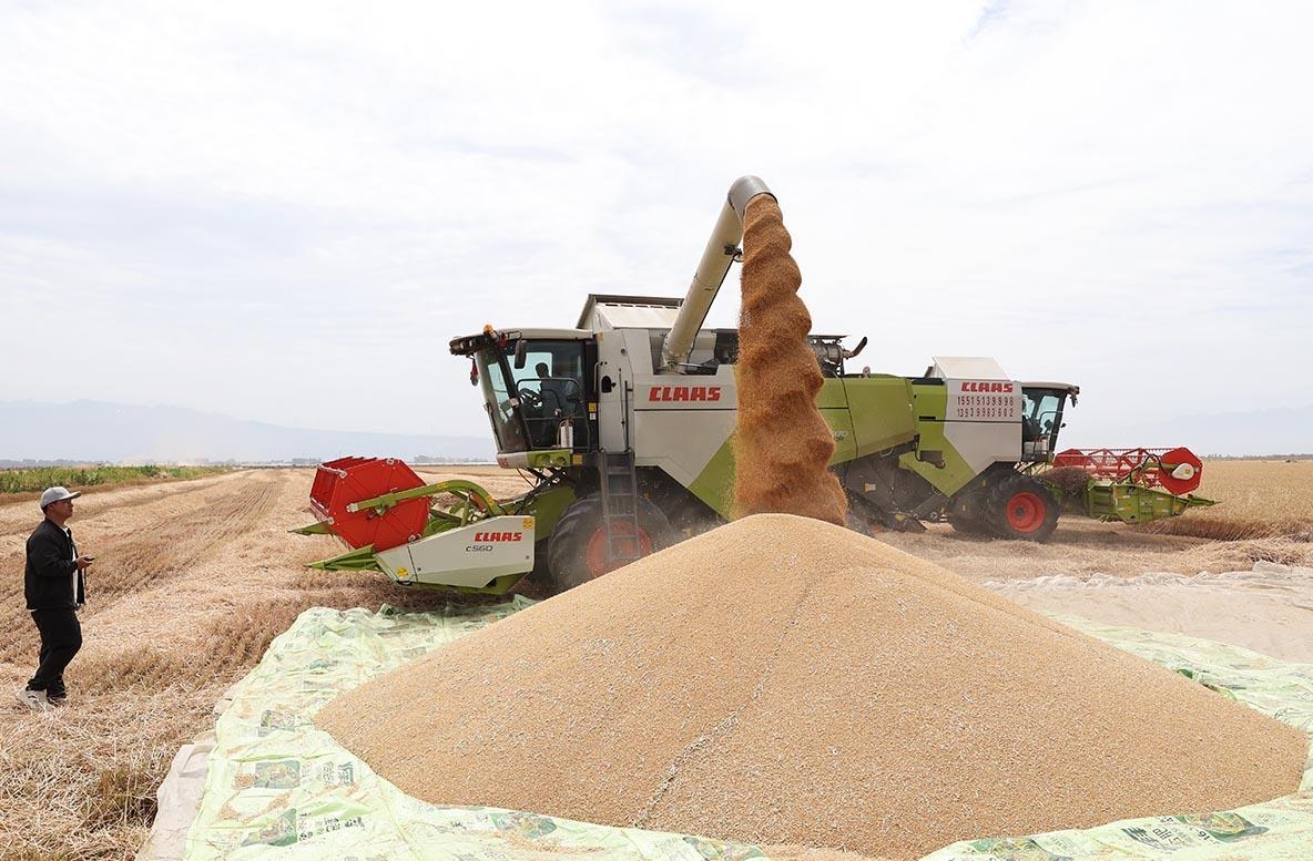 “快!快把傳送帶再調(diào)高些!”種植戶田源踮著腳,沖著工人喊道。這位在農(nóng)場扎根三年的漢子,今年照看260多畝麥田。望著不斷吐出麥粒的機械,他黝黑的臉上露出欣慰的神情。