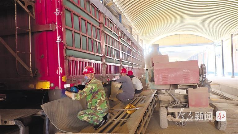 6月16日,在陜西省儲備糧咸陽直屬庫有限公司,工人準(zhǔn)備卸糧。